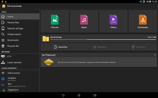 File Commander is a complete file manager that allows you to handle any file on your Android device and remotely. You can also separately handle libraries of pictures, music, videos, documents, as well as rename, delete, move, zip and send with just a few taps.